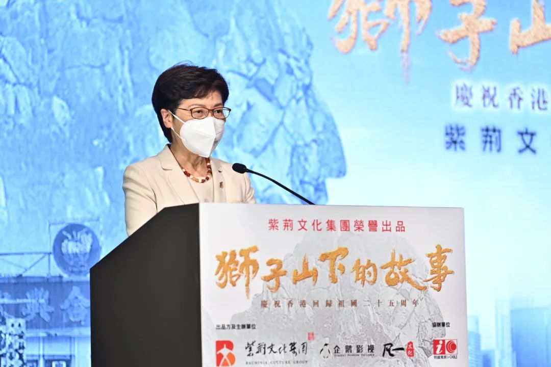 林鄭月娥在致辭中表示,提到獅子山下大家都很容易想到上世紀70年代由香港電台製作的經典實況劇集《獅子山下》,也都會想起劇集的同名主題曲。當年的劇集描述香港草根市民的生活、記錄香港的社會民生,被奉為港劇的經典。而劇集的主題曲旋律動人、歌詞勵志,刻畫出香港人同舟共濟的精神、膾炙人口,其後幾十年獅子山已經成為香港的代號,而獅子山的精神也反映香港人奮進和永不言敗的精神,也因此獅子山往往都會出現在很重要的場合及歌曲裡面,如在香港回歸二十五週年主題曲《前》裡面。