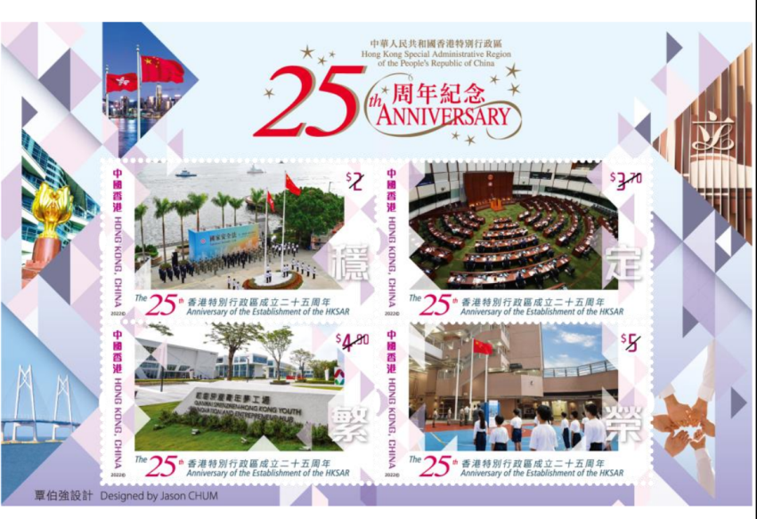 今年(2022年)是香港特別行政區成立25周年,隨着香港國安法及完善選舉制度的落實,“一國兩制”得以行穩致遠。中國人民解放軍駐港部隊自進駐香港以來,一直堅決貫徹“一國兩制”方針和香港特別行政區基本法、《中華人民共和國香港特別行政區駐軍法》及香港國安法,維護國家主權、安全、發展利益,是維護香港繁榮穩定的重要基石。為紀念香港特別行政區成立25周年及中國人民解放軍進駐香港25周年,香港郵政特別發行紀念郵品展現香港的繁榮發展。