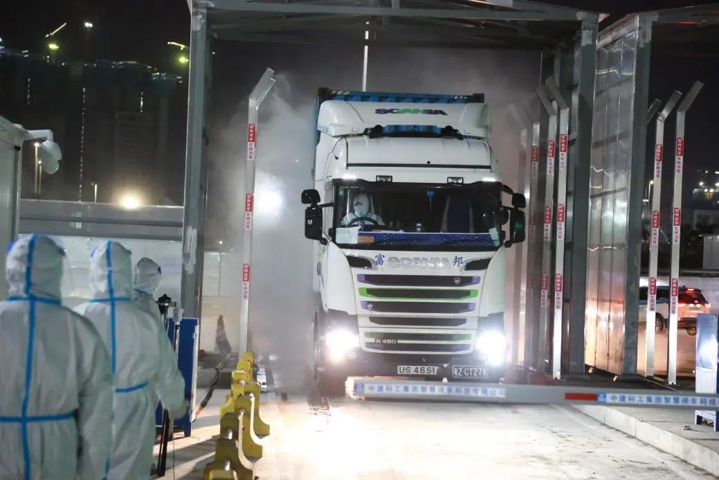 3月8日起,該接駁站全面開始運作,並嚴格按照疫情防控傳播風險高低,在接駁站內劃分紅區、黃區和綠區三區,確保最大限度降低跨境貨物陸路運輸疫情傳播的風險,有效保障供港物資和粵港兩地跨境物流安全順暢。自運營以來,南山接駁站共操作65輛跨境車。