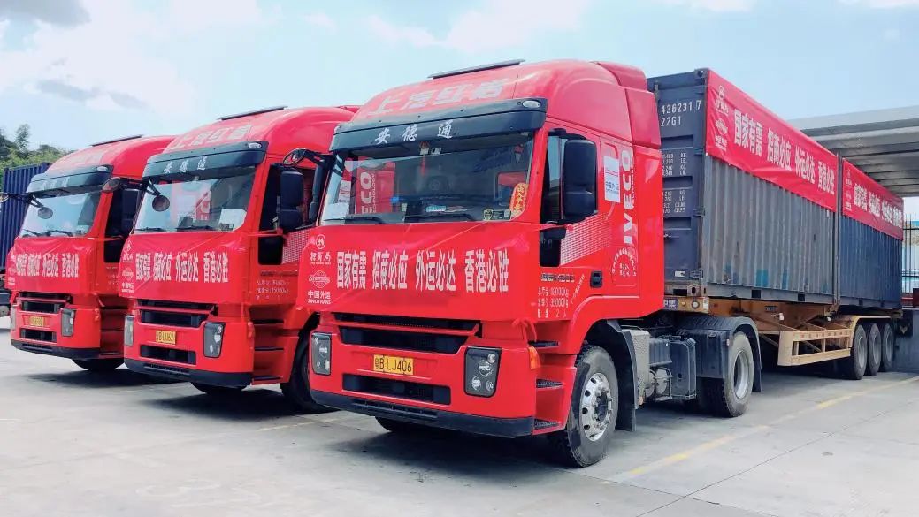 此次啟動的南山接駁站,是中國外運開通中央援港班列、供港民生物資水路運輸快速通道之後,又一次開啟供港物資的公路運輸服務。該接駁站位於深圳前海媽灣和保稅區物流樞紐範圍內,總佔地面積18.3萬平方米,場地最大容量約1000輛貨車,每日總體處理能力為深港雙向2040車次。