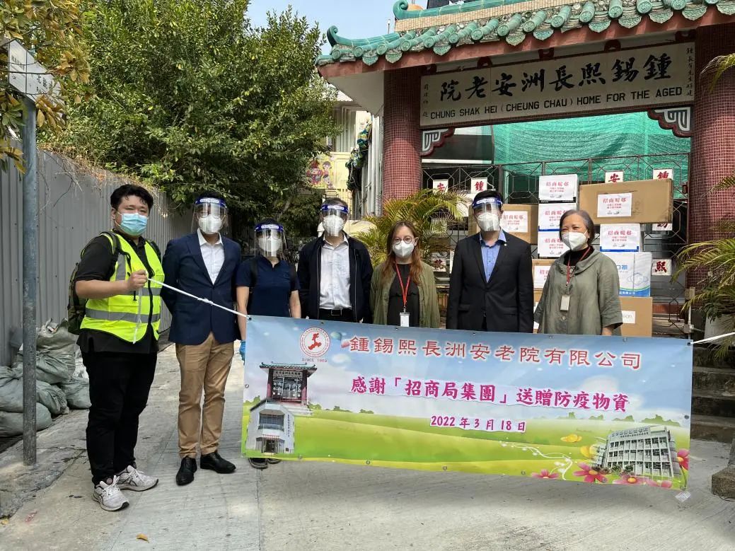 香港本輪疫情嚴重威脅安老院院友,尤其是年長體弱人士及一線工作人員的生命健康,為緊急響應安老院舍疫情嚴峻情況,招商局分批面向院舍染疫長者及工作人員提供所需防疫物資,3月份以來已向香港多家安老院捐贈超過170萬件各類防疫物資。
