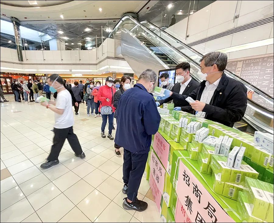 為滿足市民對中成藥的需求,3月29日,招商局組織“招商暖邨”關愛行動走進香港上環信德中心,向信德中心物業後勤人員、商戶店員及街坊市民派送快速檢測包及國家第九版《新型冠狀病毒肺炎診療方案》推薦用藥“疏風解毒膠囊”各2000盒。許多市民在領取檢測包及中成藥的同時,對“招商暖邨”關愛行動表示歡迎和感謝。有市民表示,近期關注到“招商暖邨”的抗疫行動,“招商局派發的抗疫物資符合當下市民的實際需求,很多市民對中醫藥抗擊新冠的療效是肯定的,我們樂見更多中醫藥來港,一起抗擊疫情”。