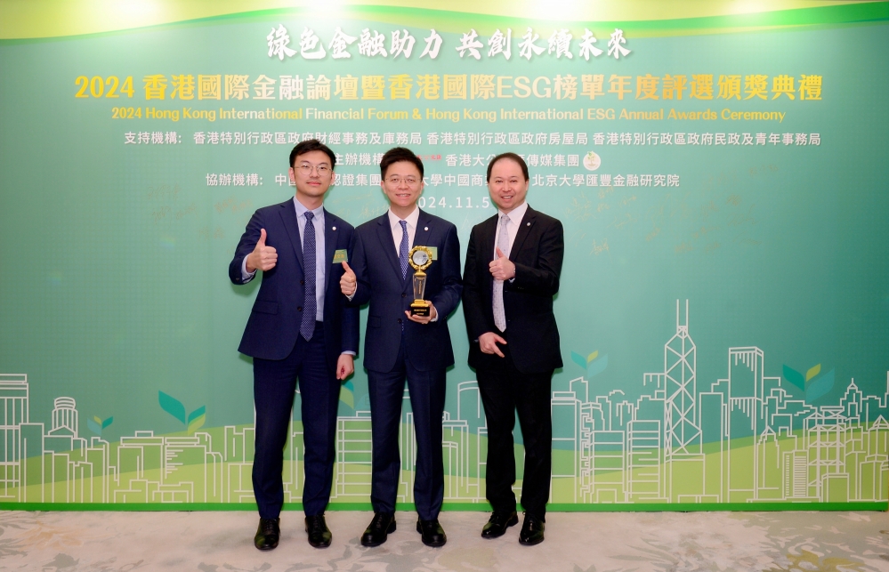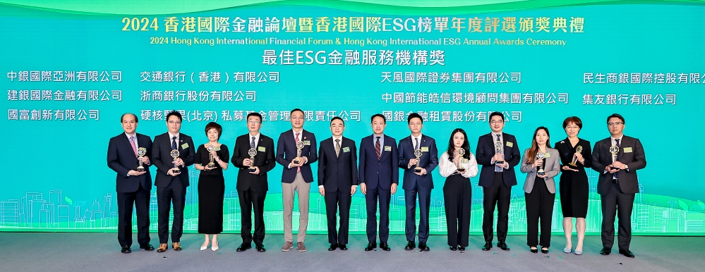 11月5日下午,2024香港國際金融論壇暨香港國際ESG榜單年度評選頒獎典禮在香港隆重舉行。香港政商界人士、內地及香港上市公司、創投機構負責人、經濟學家等逾 300 位嘉賓出席活動。集友銀行憑藉其綠色金融的卓越表現和積極貢獻,榮獲「最佳ESG金融服務機構獎」。集友銀行助理總裁王柏森代表獲授獎項。