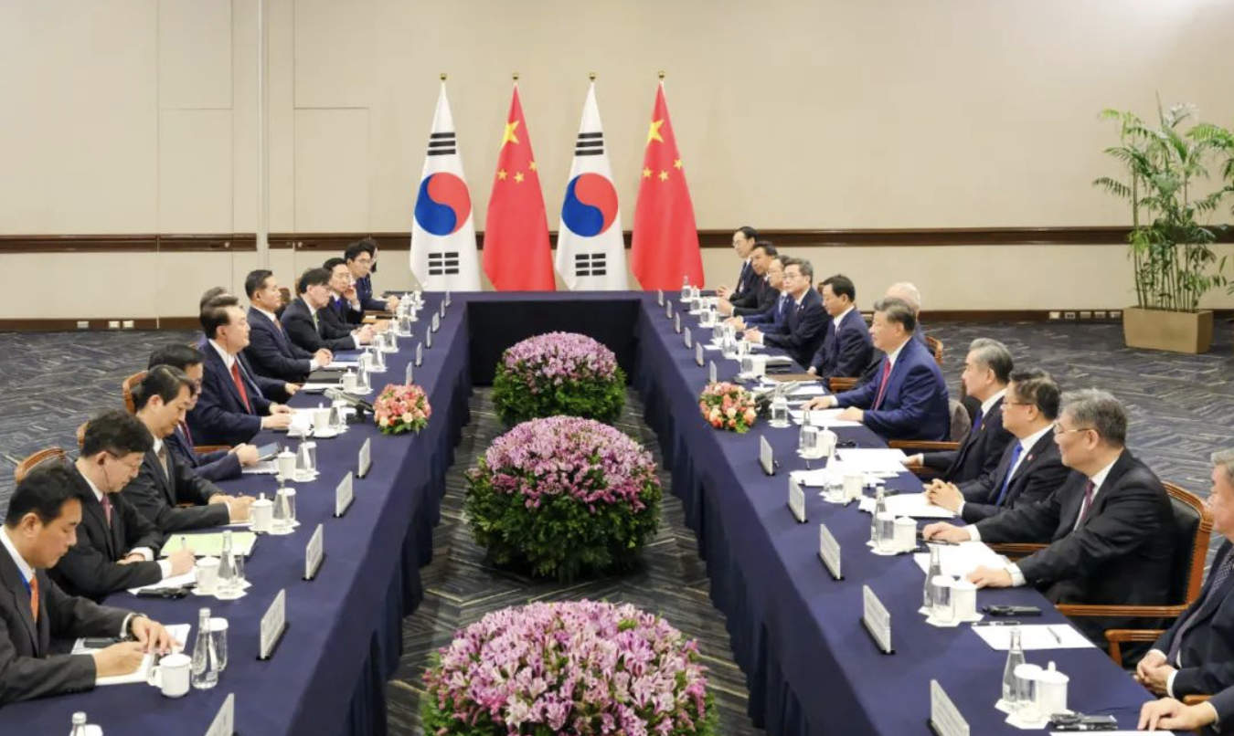 尹錫悅表示,兩年前我同習近平主席在巴厘島進行會晤以來,雙方各領域交流合作有序發展。中國是世界經濟增長的重要引擎,為應對世界面臨的問題作出重要貢獻。韓國視中國為重要合作伙伴,希望本着相互尊重精神,秉持建交初心,推動韓中戰略合作伙伴關係不斷發展,更好應對共同挑戰,促進地區和平與穩定。韓方尊重一個中國的政策不會改變,希望參與中國現代化進程,進一步緊密兩國經濟貿易合作。歡迎中方給予韓國公民免籤待遇,願同中方密切人文交流,增進兩國民間友好。韓方願同中方密切在亞太經合組織等多邊機制溝通合作,共同維護多邊主義和自由貿易。