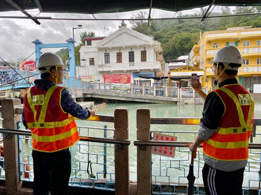 隨着熱帶氣旋「桃芝」逐漸遠離本港,在天文台改發三號強風信號後,發展局轄下部門及其他相關政府部門隨即啟動特別巡查,包括渠務署、負責管理樹木和維修保養人造斜坡的部門、屋宇署等,檢查並清理因強風吹下樹葉及沙泥等引致淤塞的渠道,以及識別強風過後有潛在風險的樹木、斜坡、構築物和招牌等,並進行所需工程以消除安全隱患,以保障公眾安全。