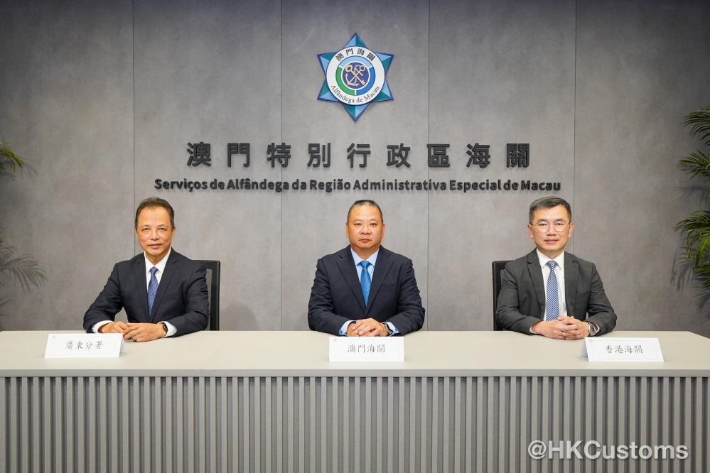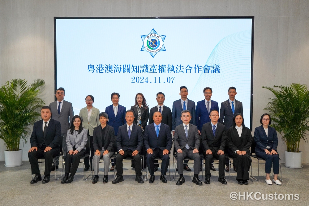十一月七日,香港海關助理關長(情報及調查)賴子榮、海關總署廣東分署副主任馮國清和澳門海關副關長李煜輝帶領三地代表團於澳門出席第四次「粵港澳海關知識產權執法合作會議」。