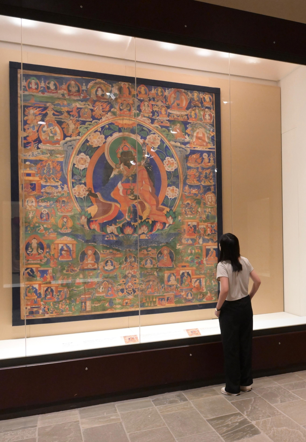 這次展覽展示的藏傳佛教文物,皆是徐展堂博士自一九七○年代起走訪各地不斷購藏所得,包括十七世紀至二十世紀唐卡藝術精品29項、鎏金佛像18項及法器等其他珍罕文物23項。唐卡是藏傳佛教獨特的藝術表現形式,將佛教主要神祗或宗師繪畫於棉布或絲綢上,表現他們的事蹟和所在的境界。鎏金造像則展現歷代能工巧匠的金屬工藝技術,並反映在不同時期及地域文化相互影響下所形成的中國佛教造像藝術特色。
