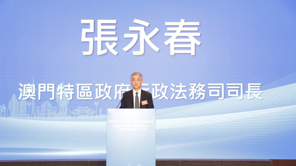 值澳門回歸祖國25周年之際,第九屆“一國兩制”與基本法研討會於11月26日在澳門舉辦。本次研討會以“站在新的發展起點,共創澳門美好明天”為主題,來自學術界、法律界、政商界、金融界、出版界等嘉賓共約180人出席。澳門特區政府行政法務司司長張永春出席並致辭,他表示,自澳門回歸祖國以來,在中央和祖國內地大力支持下,具有澳門特色的“一國兩制”實踐取得了舉世矚目的成就。回首25年的不平凡歷程,澳門在政治、經濟、民生建設以及區域發展等方面都取得了令人矚目的發展成果。致辭全文如下:
