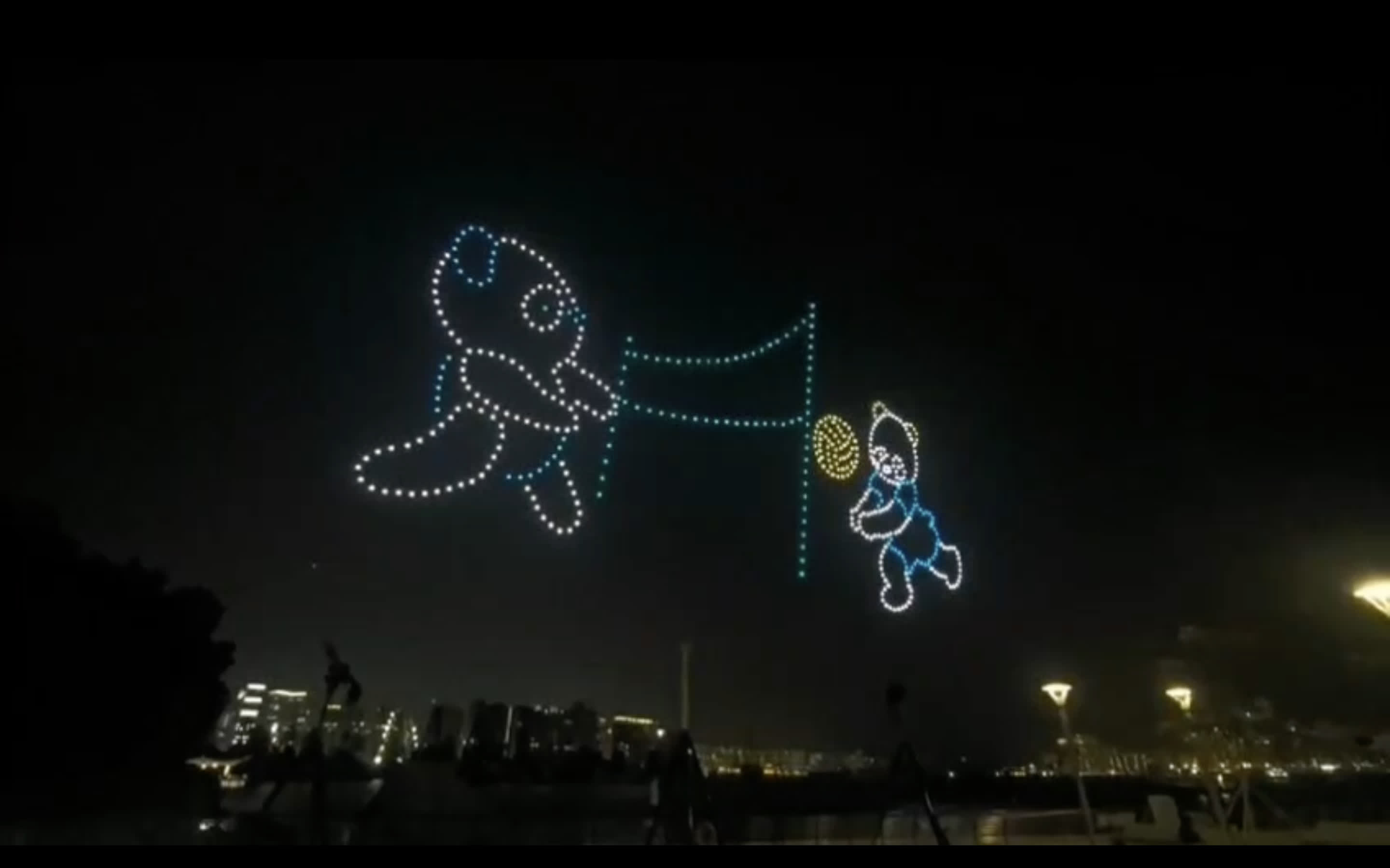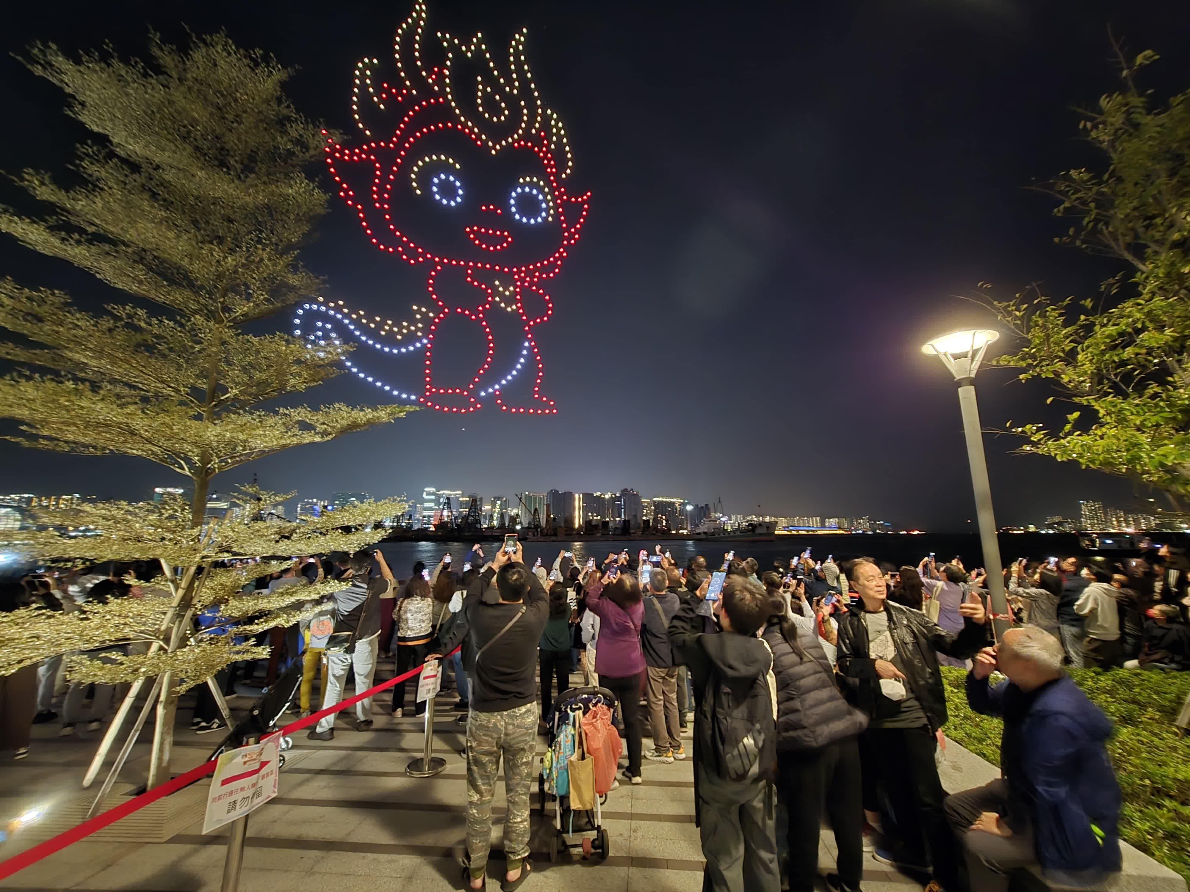 本次無人機表演公眾展示九龍城眾多特色,包括代表九龍城區的龍形公仔,啟德舊機場、宋皇台、九龍城寨等;表演亦以“熊貓運動員”呈現明年本港承辦的8個全運會項目,包括手球、場地單車、劍擊、沙灘排球、七人欖球等。