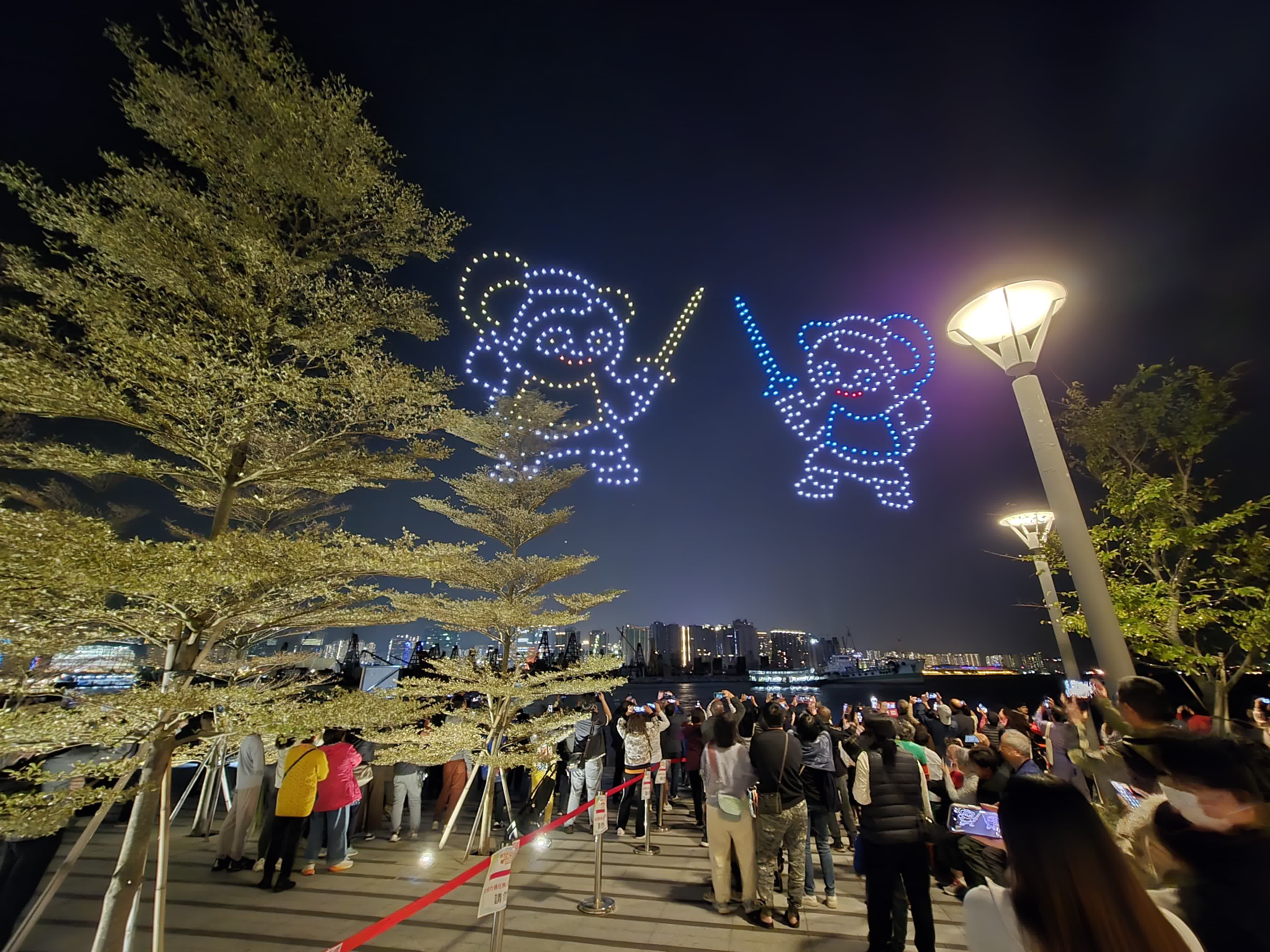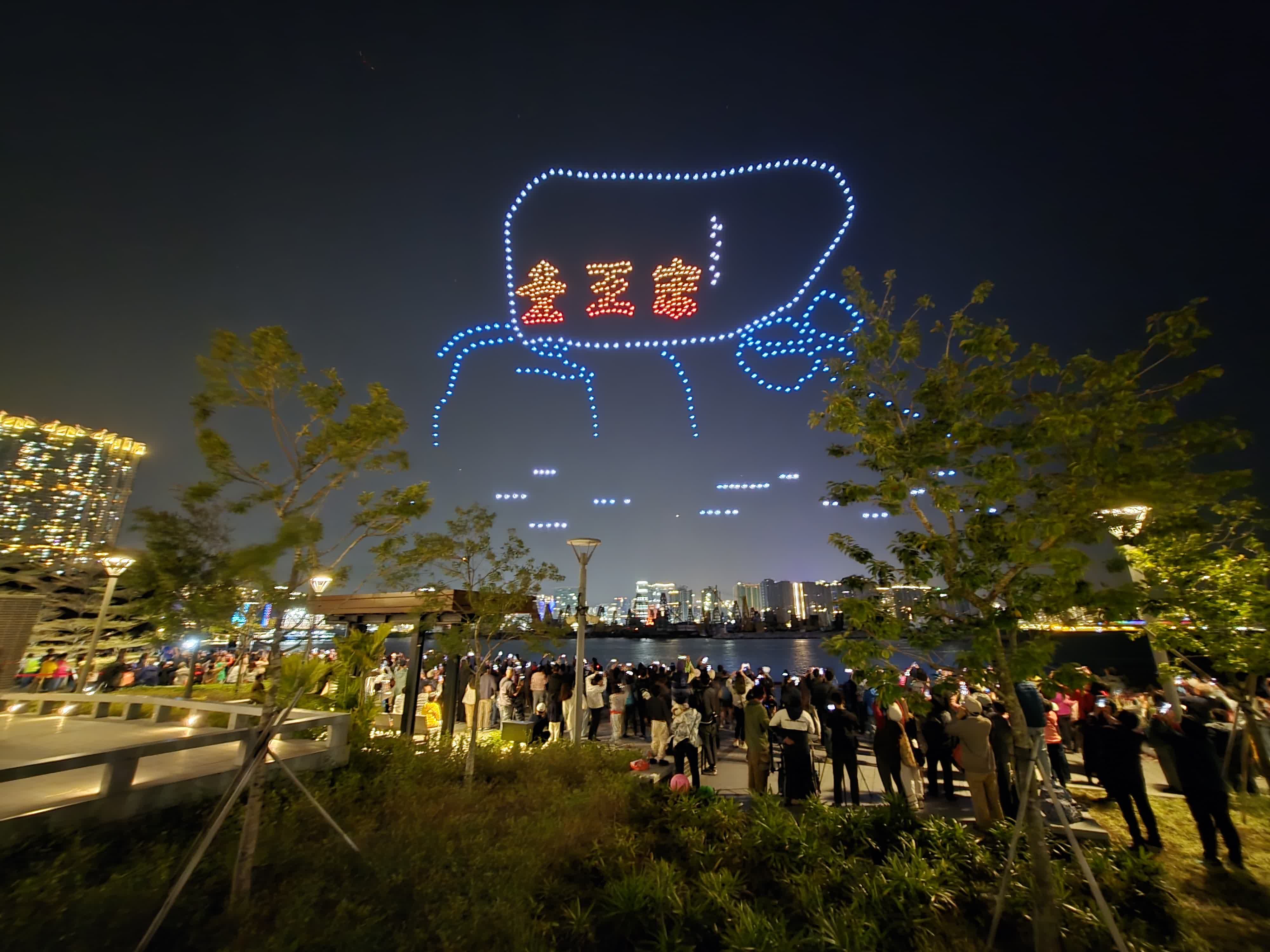 為響應“18區日夜都繽紛”,九龍城區議會1日舉辦首次無人機表演,活動7點於土瓜灣海心公園海濱長廊上演,持續10多分鐘,現場吸引眾多市民遊客前來觀賞。