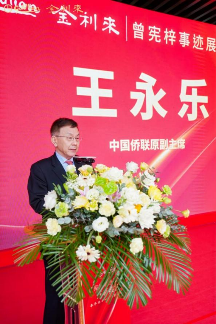 中國僑聯原副主席王永樂回憶曾憲梓先生一生愛國報國的感人點滴,表示曾憲梓事跡展覽館的建成如同一塊明國功勳的豐碑,記錄了他的傳奇人生,承載着濃厚的鄉情文化,傳遞深情的愛國情懷,它將會成為重要的愛國主義教育基地,希望大家把曾憲梓先生愛國愛港愛鄉的接力棒永遠傳遞下去。