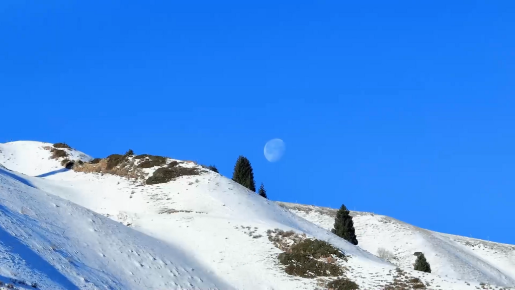鋪滿白雪的山谷、翠綠的松柏、奔騰的河水,山野之中的美景讓人陶醉。