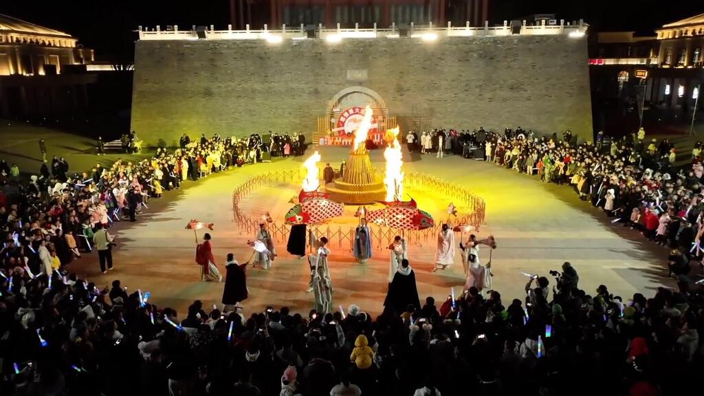 看篝火晚會,聽歌聲悠揚。新年來臨,陝西省延安市舉辦篝火音樂會、廣場舞大賽、百人打腰鼓等一系列活動,用不一樣的方式“點亮”2025,讓市民遊客在滿滿的儀式感中開開心心過新年。