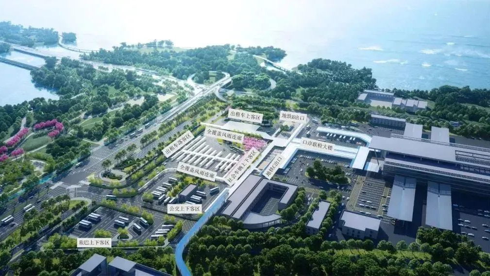 此外,增設全覆蓋式風雨連廊銜接人行天橋、落客區、口岸聯檢大樓及地鐵口,建設仿石材磚慢行鋪裝及生態綠地,提升景觀綠化及慢行接駁設施。按臨時建築標準增設公交站房、交警值班室等配套建築,總面積約400平方米。