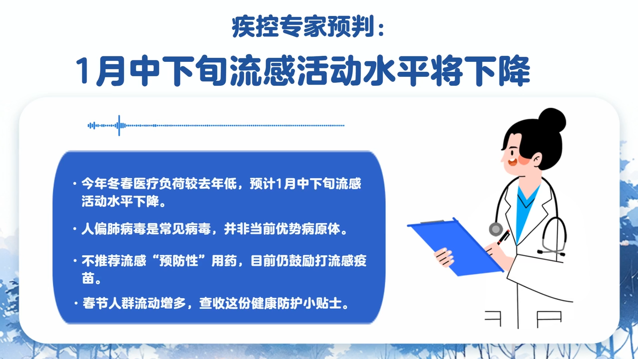今年冬春醫療負荷較去年低,預計1月中下旬流感活動水平下降。