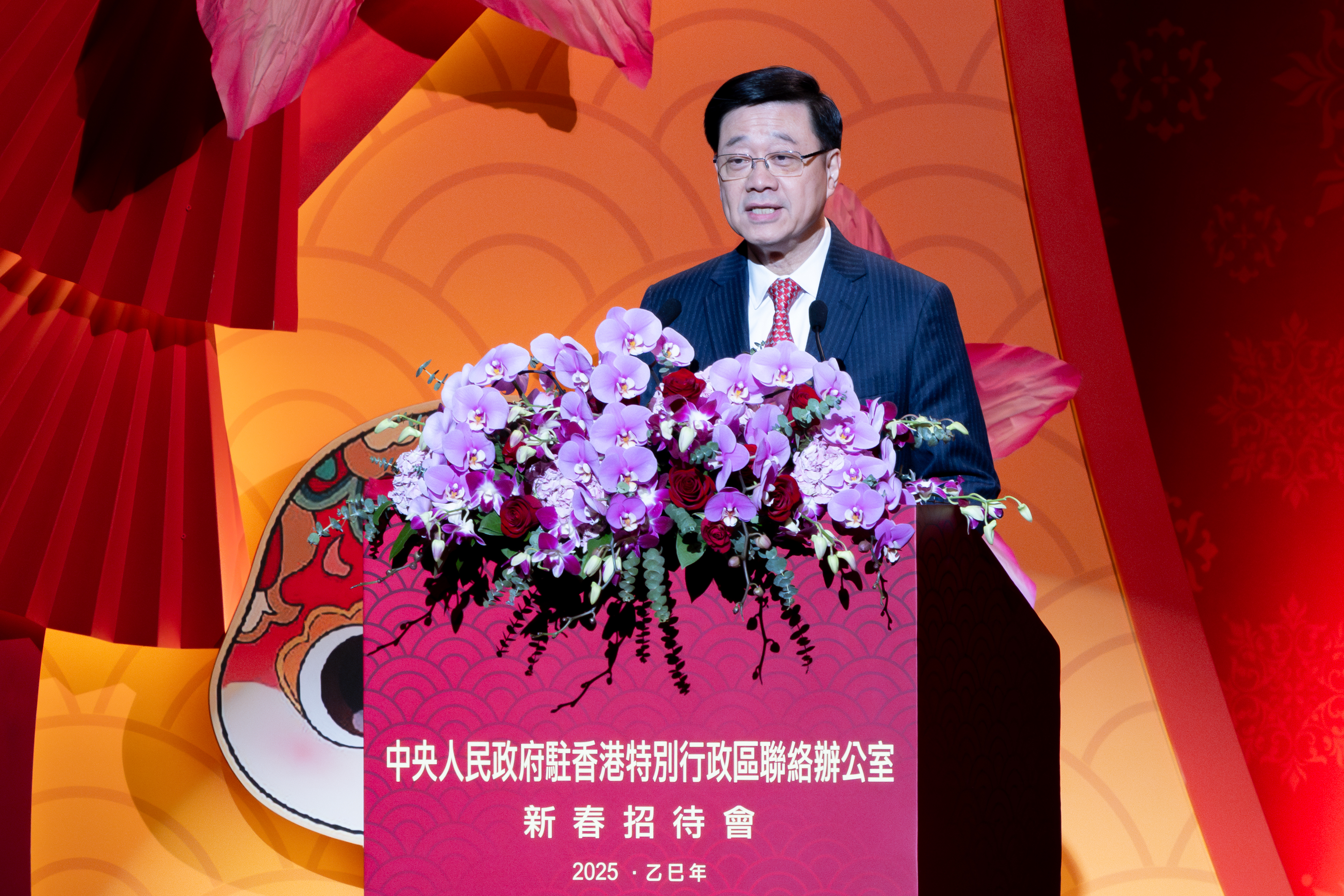 李家超在致辭時表示,2024年是新中國成立75週年,香港在龍年也取得一系列令人鼓舞的成績。特區歷史性完成《基本法》第二十三條本地立法的憲制責任,完成等待了二十六年八個月十九天的光榮使命。香港在世界舞台上熠熠生輝,社會各界喜事連連,多項挺港惠港措施出臺,迎來發展經濟、改善民生的最佳時機。習近平主席在慶祝澳門回歸祖國25週年大會暨澳門特別行政區第六屆政府就職典禮上發表重要講話,指出“一國兩制”蘊含的和平、包容、開放、共享的價值理念,是中國的,也是世界的,值得共同守護。習主席深刻總結了“一國兩制”實踐經驗,彰顯了中央全面準確、堅定不移貫徹“一國兩制”方針的堅定立場,為香港未來發展和發揮“一國兩制”制度優勢指明方向,為香港由治及興注入強勁動力。展望蛇年,特區政府將團結社會各界,繼續銳意改革、奮發作為,實現三個新願景。一是香港將有如靈蛇蛻變,吐故納新。更好地發揮“一國兩制”制度優勢,推動香港內聯外通,持續優化互聯互通機制,擴展國際經貿網絡,爭取與更多傳統市場和共建“一帶一路”地區建立投資協議和自由貿易協議。二是香港將宛若靈蛇機智,把握機遇。積極對接國家戰略,塑造經濟發展新動能新優勢。推動香港建設大宗商品交易生態圈,構建國際黃金交易中心。創新科技引領經濟發展,積極發展河套深港科技創新合作區和北部都會區等具有“一國兩制”特色的高水平開放建設。三是香港將猶如靈蛇堅韌,遇強愈強。特區政府會繼續帶領社會,齊改革、同發展、惠民生、謀幸福,更主動變革,以更開創性的思維、更果敢的行動迎接挑戰,抓住機遇,推動香港社會各領域的轉型升級,向世界展現“一國兩制”的蓬勃生機。