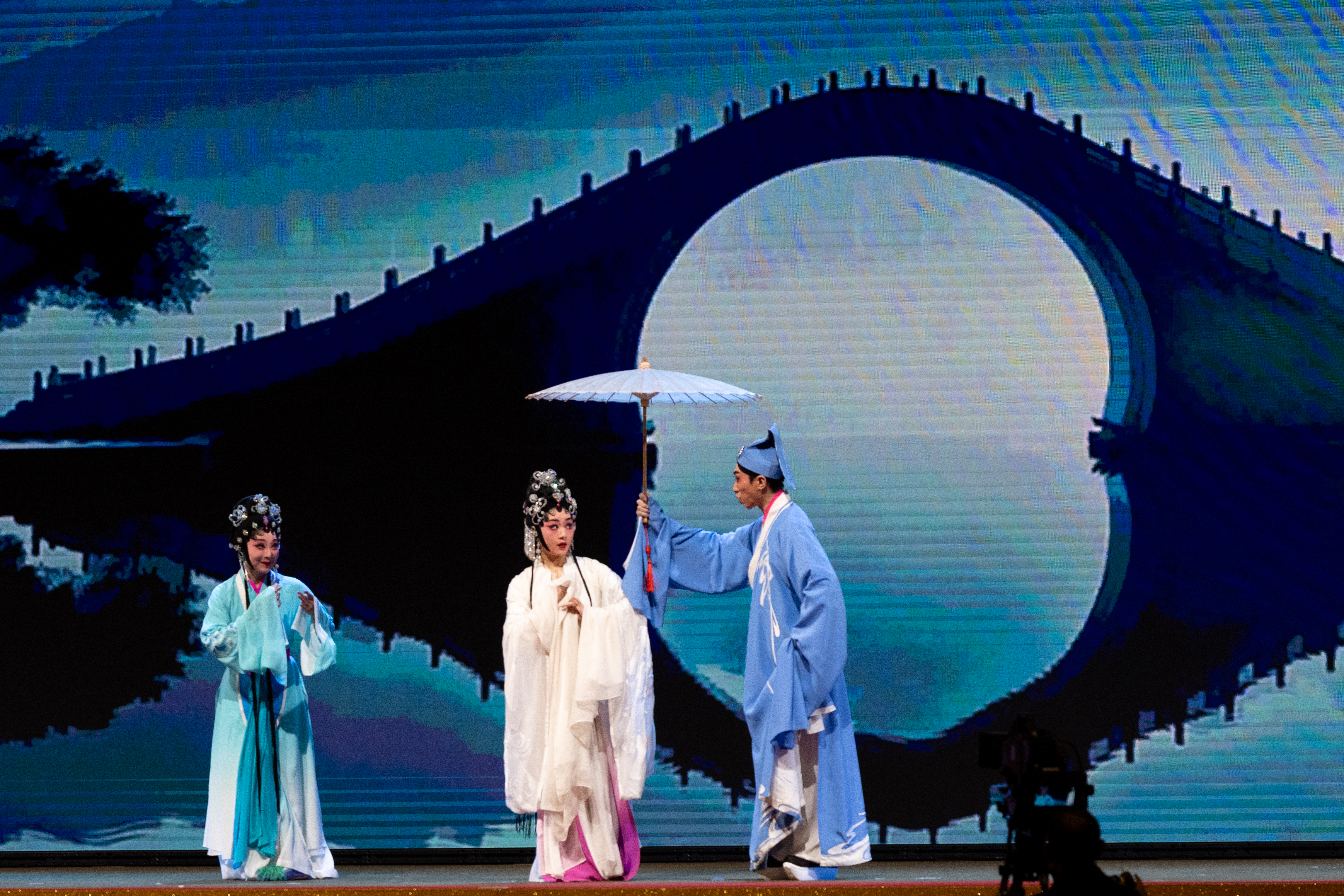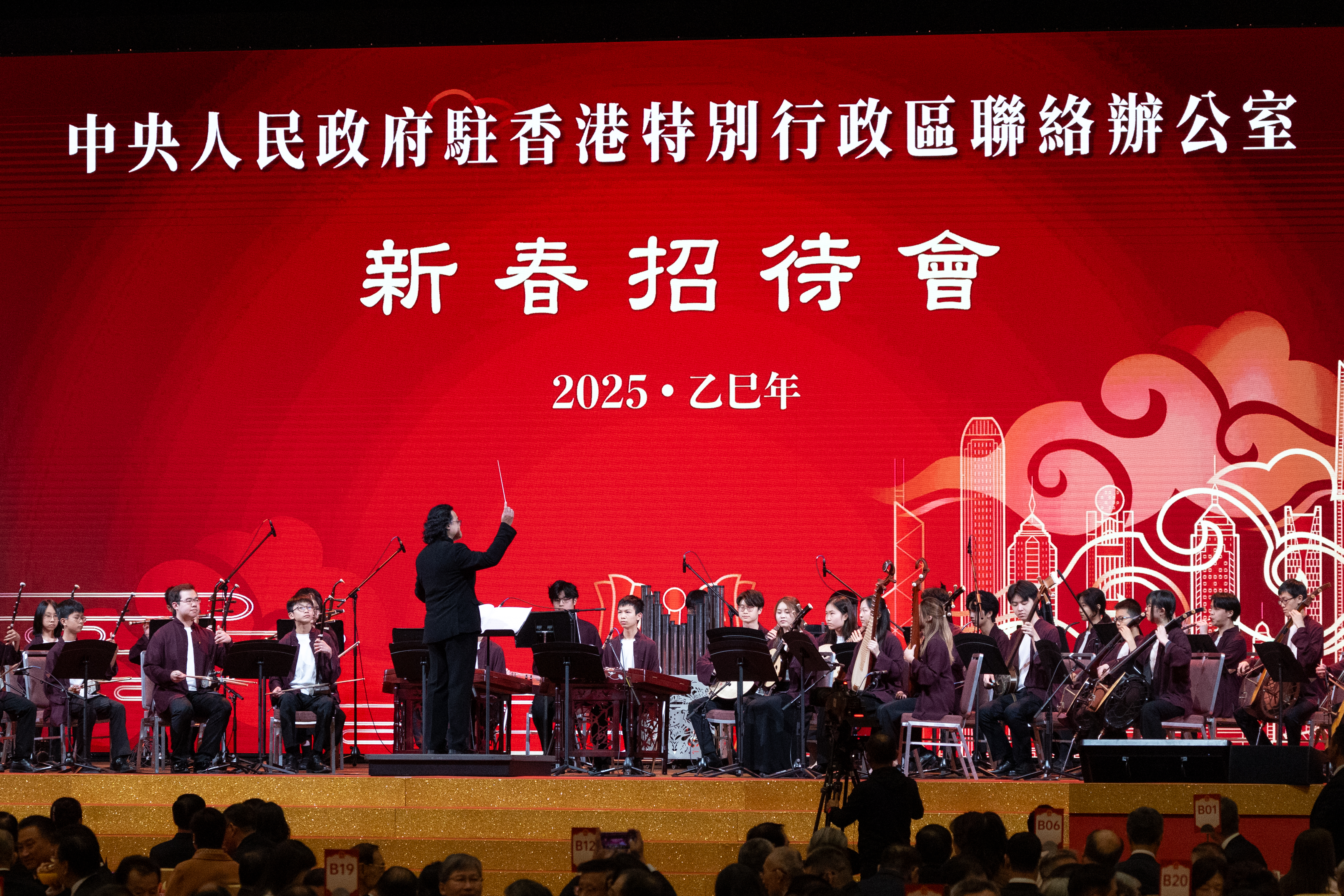 夜色下的會展中心華燈璀璨,場內氣氛熱烈。香港青少年中樂團歡樂喜慶的器樂演奏《賽龍奪錦》《金蛇狂舞》拉開招待會序幕,寄託對香港靈活應變、“逢變則興”的美好嚮往。國樂大師方錦龍一曲琵琶獨奏《玄鳥》,訴說着“和風送暖,百鳥鳴春”的盎然生機。廣東粵劇院院長曾小敏攜團隊傾情獻唱新編粵劇《白蛇傳·情》經典片段,帶領觀衆從美麗的千古傳奇中感受嶺南文化的底蘊魅力。著名歌手鄺美雲和香港教聯會少兒合唱團深情合唱獲得中宣部“五個一工程”優秀歌曲獎的港創歌曲《我們的家》,表達對祖國、對香港大家庭的熱愛與眷戀。