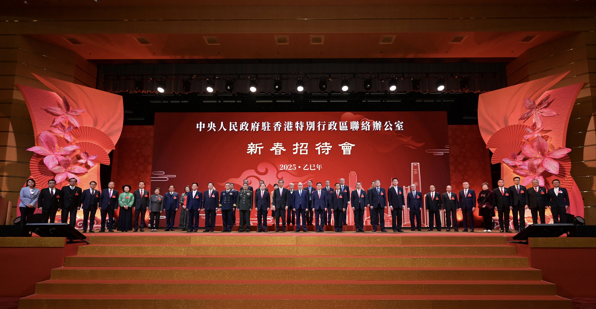 紫荊雜誌(記者 劉可熠 梅肯)1月17日香港報道:龍舞華彩辭舊歲,蛇迎新春共歡歌。1月17日晚,中央政府駐港聯絡辦新春招待會在香港會展中心舉行。受中央港澳辦、國務院港澳辦主任夏寶龍委託,中央港澳辦、國務院港澳辦副主任,中央政府駐港聯絡辦主任鄭雁雄出席並致辭,代表夏寶龍主任,中央港澳辦、國務院港澳辦和中央政府駐港聯絡辦向香港同胞致以新春祝福。香港特別行政區行政長官李家超出席並致辭,全國政協副主席梁振英,以及來自中央駐港機構、香港特區政府、立法會、司法機構、香港社會各界約1600名嘉賓歡聚一堂,共慶新春佳節。