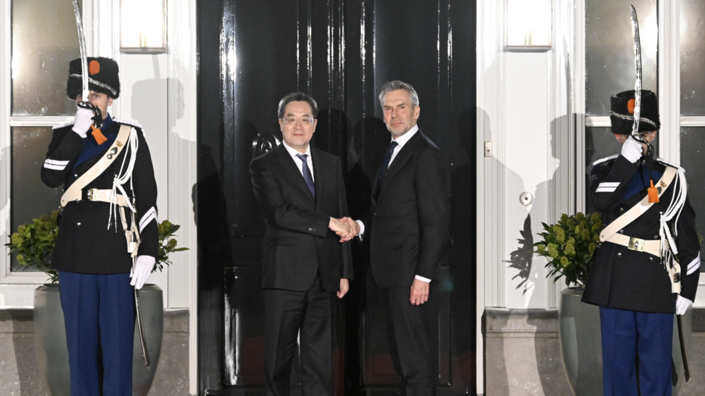 1月22日至23日,中共中央政治局常委、國務院副總理丁薛祥應邀訪問荷蘭,在海牙分別會見荷蘭國王威廉-亞歷山大、首相斯霍夫、副首相兼氣候與綠色增長大臣赫爾曼斯。