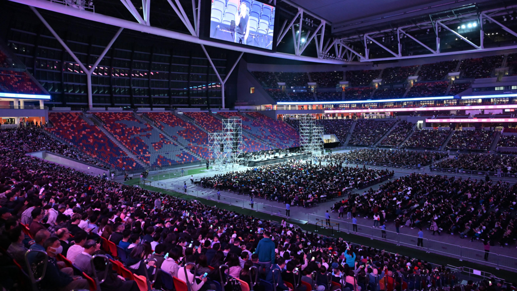 大匯演於晚上8時準時開始,可容納5萬名觀眾的主場館,三面座位幾乎全部坐滿,場地中央亦設有數千個臨時座位,由紀律部隊人員組成的樂隊演出多首本港流行曲,在場人士同唱《中國人》、《獅子山下》,氣氛熱烈。