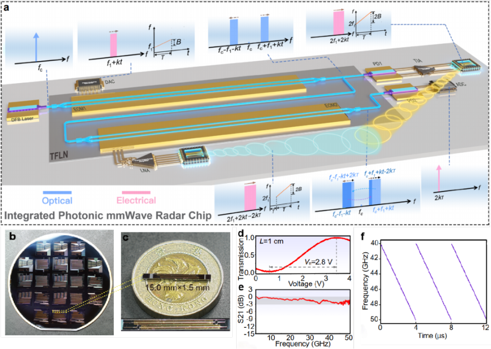 記者日前從南開大學獲悉,南開大學攜手香港城市大學,成功研製出薄膜鈮酸鋰光子毫米波雷達芯片,在毫米波雷達領域取得重大突破。這一創新成果,為未來6G通信、智能駕駛、精準感知等前沿領域的應用奠定了堅實基礎。