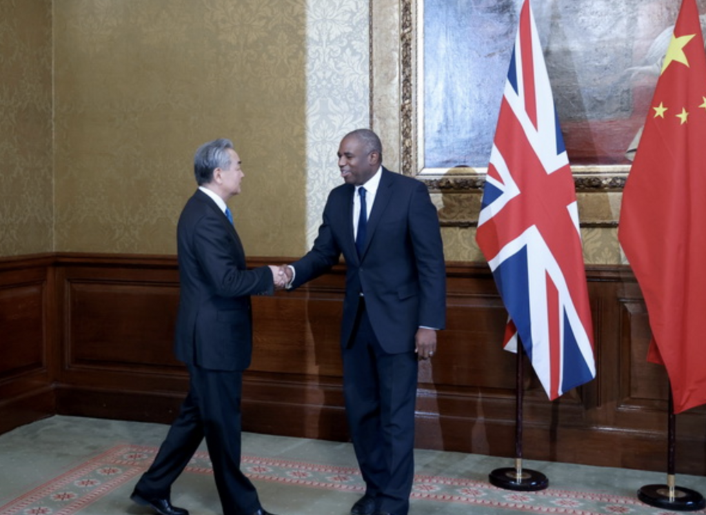王毅說,今年是中國人民抗日戰爭暨世界反法西斯戰爭勝利80週年,也是聯合國成立80週年。中英同為聯合國安理會常任理事國,當前形勢下應展現大國擔當,踐行多邊主義,支持自由貿易,推動政治解決熱點問題,共同促進世界和平與穩定。