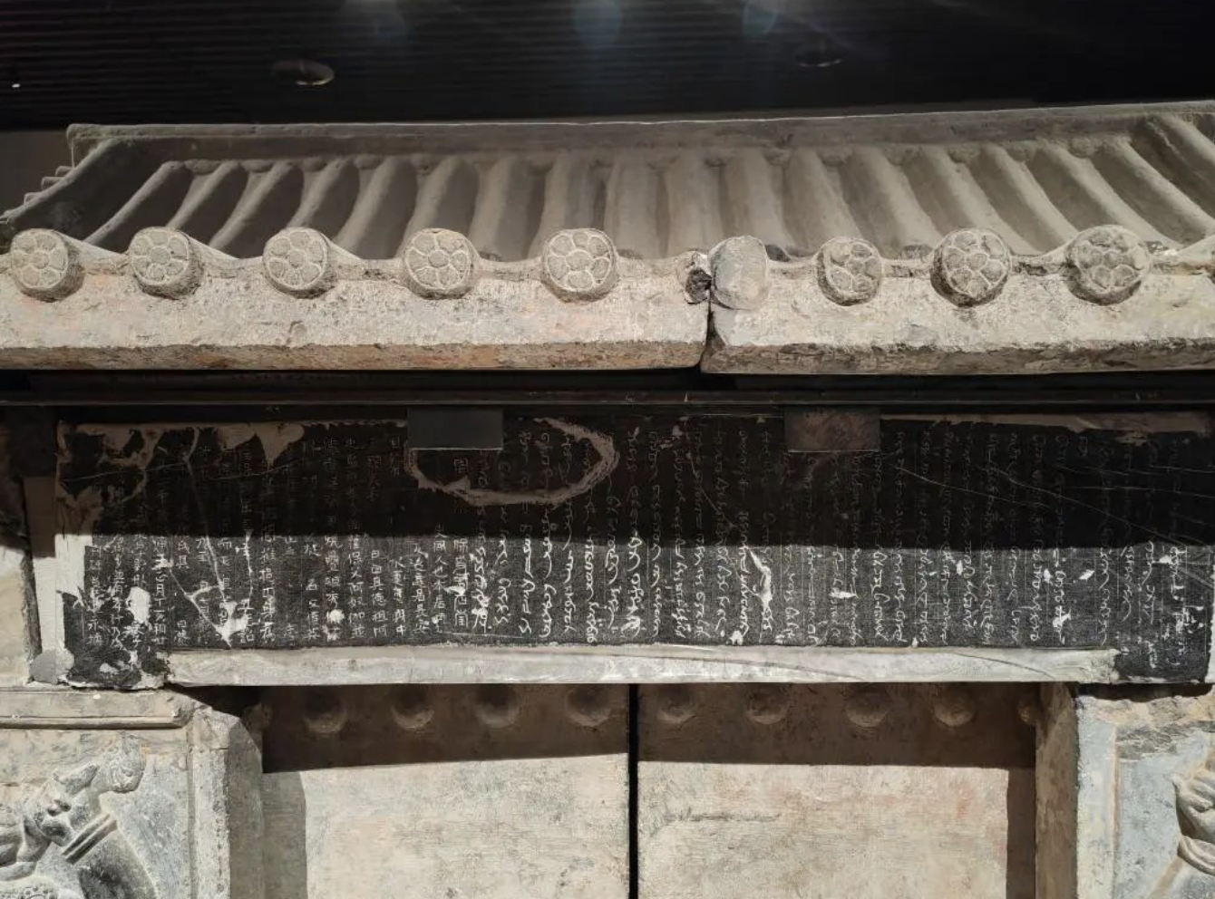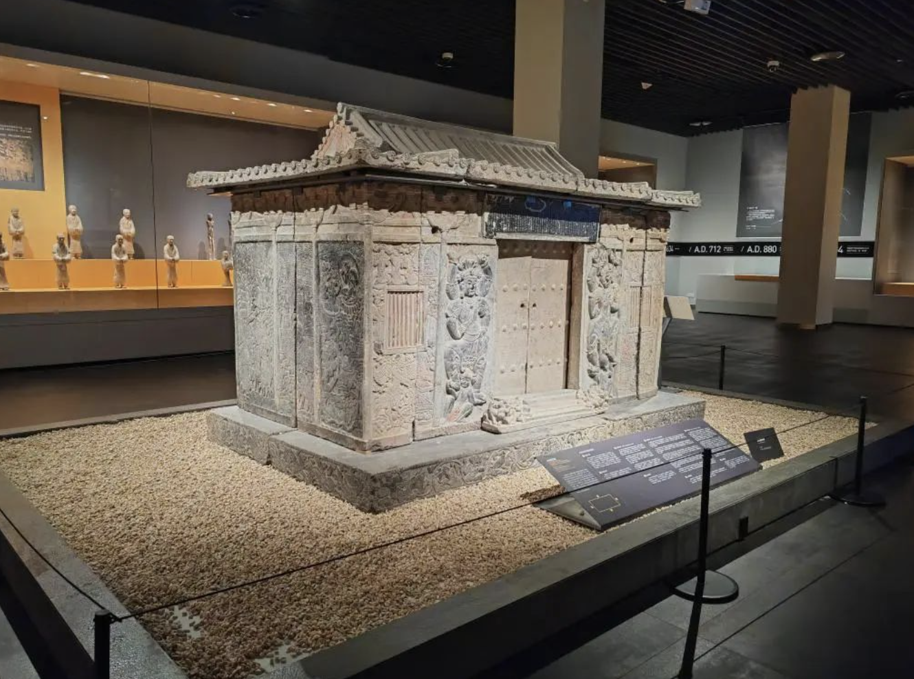 史君墓石槨是一件北周時期的文物,2003年出土於西安市未央區井上村的一座粟特貴族墓葬中,墓主史君是粟特商隊的首領——薩保。這件石槨上有粟特語和漢語銘文,以及融合多種文化元素的浮雕,對研究絲綢之路上的文化、商貿交流具有重要價值。