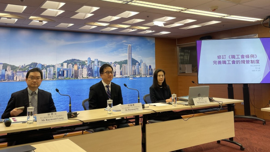 特區政府建議修訂《職工會條例》,加強維護國家安全及完善職工會的規管制度 ,並計劃4月向立法會提交條例草案。修訂賦權職工會登記局局長可基於維護國家安全需要,拒絕職工會新登記或合併申請,並建議加強登記局局長規管及調查職工會的法定權力。