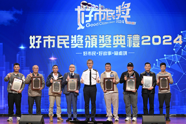 警務處23日舉行好市民獎頒獎典禮2024,嘉許80名協助撲滅罪行、維護法紀的好巿民,並向七間機構頒發好機構獎,表揚其積極支持警隊的防騙防罪宣傳及協助偵查罪案。