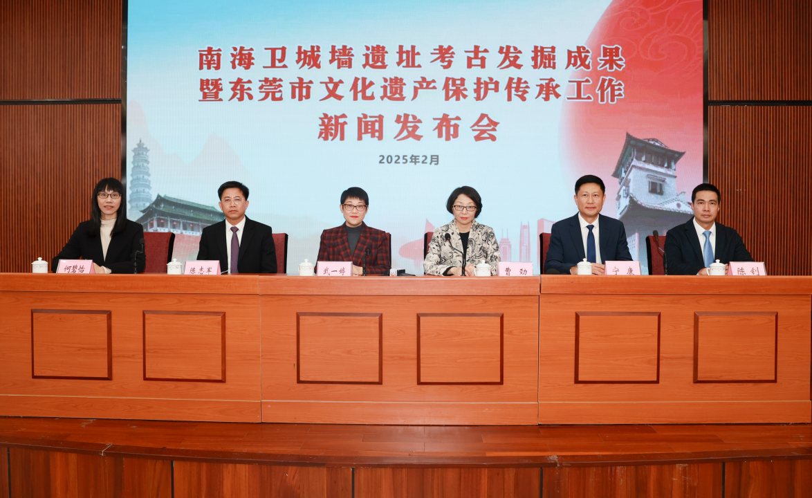 紫荊雜誌(記者彭彥)2月26日東莞報道:2025年2月25日,東莞市舉行南海衛城牆遺址考古發掘成果暨東莞市文化遺產保護傳承工作新聞發布會,廣東省文物考古研究院院長曹勁發布考古發掘成果,此次成果系廣東近年單次發掘面積最大的考古項目,將規劃建設城牆考古遺址公園。東莞市委常委、宣傳部部長武一婷介紹東莞市加強文化遺產保護傳承工作情況。東莞市人民政府副秘書長陳志軍,市文化廣電旅遊體育局黨組書記、局長寧康,莞城街道黨工委書記陳釗圍繞城牆考古遺址公園規劃建設等內容作解答。發布會由市政府新聞辦副主任何碧怡主持。