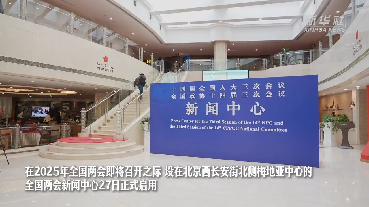 在2025年全國兩會即將召開之際,設在北京西長安街北側梅地亞中心的全國兩會新聞中心27日正式啟用。