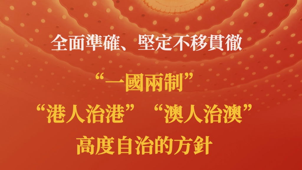 國務院總理李強5日在政府工作報告中表示,我們要全面準確、堅定不移貫徹“一國兩制”、“港人治港”、“澳人治澳”、高度自治的方針,維護憲法和基本法確定的特別行政區憲制秩序,落實“愛國者治港”、“愛國者治澳”原則。支持香港、澳門發展經濟、改善民生,深化國際交往合作,更好融入國家發展大局,保持香港、澳門長期繁榮穩定。