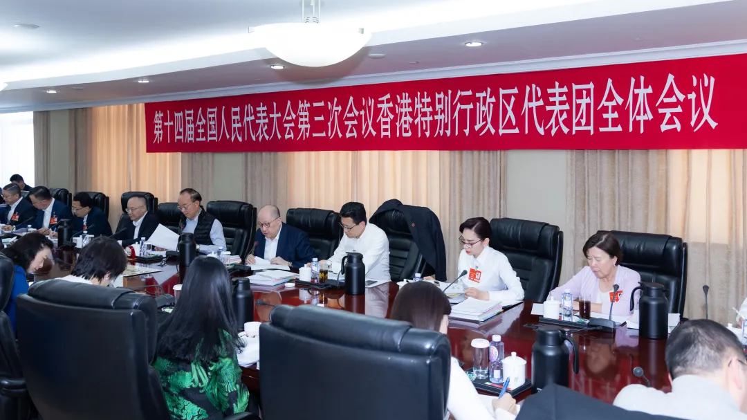 3月5日下午,十四屆全國人大三次會議香港代表團舉行全體會議,審議政府工作報告。17位港區全國人大代表踊躍發言,高度評價工作報告,並結合香港實際提出意見建議。全國人大代表、中央政府駐港聯絡辦主任鄭雁雄在參加審議時表示,聽了李強總理代表國務院作的政府工作報告,倍感振奮、備受鼓舞。報告總結成績實事求是,分析形勢科學精準,部署工作務實具體,體現了穩中求進工作總基調,突出了高質量發展根本要求,貫穿了改革創新精神實質,回應了人民群眾熱切期盼,是一個高舉旗幟、求真務實、凝心聚力的好報告。