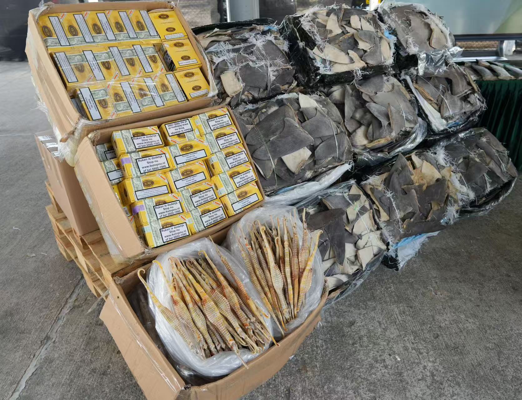 香港海關3月22日在香港西面水域偵破一宗涉嫌利用出境漁船走私的案件,檢獲一批市值共約2500萬元的走私物品,包括懷疑受管制乾魚翅、電子產品及雪茄等,並扣查一艘漁船。