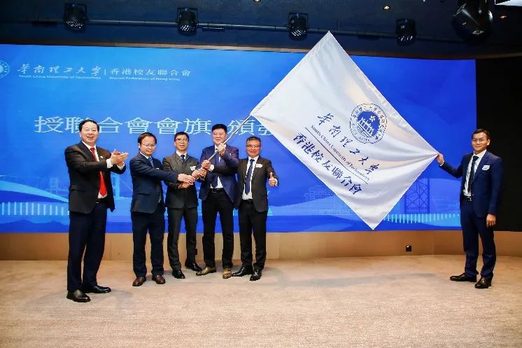 典禮現場,章熙春與中聯辦教科部調研員鞏德亮,校友代表李永喜、劉毅翔、簡偉文、李堅共同為華南理工大學香港校友聯合會成立揭幕,並舉行了會旗授予及理監事會成員聘書頒發儀式。