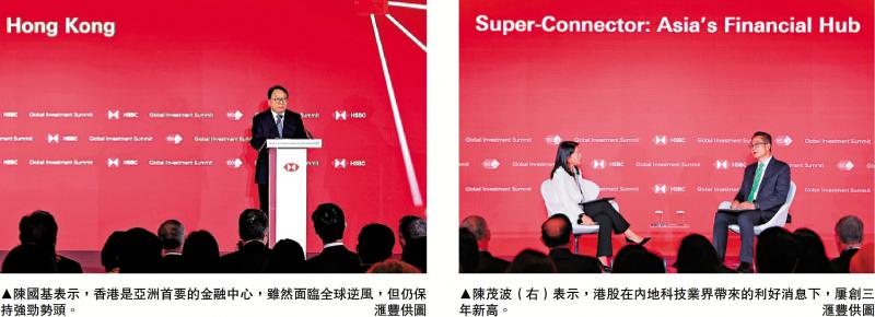 滙豐主辦的第二屆“全球投資峰會”一連三日在港舉行,預計吸引來自1200間機構合共逾4500名業界翹楚與會。香港特區署理行政長官陳國基致辭表示,從香港股市本月中升至3年高位和香港總存款增長來看,投資者信心正在恢復,證明全球投資者對香港金融基礎設施、監管框架以及與內地和全球長期聯繫的信任。