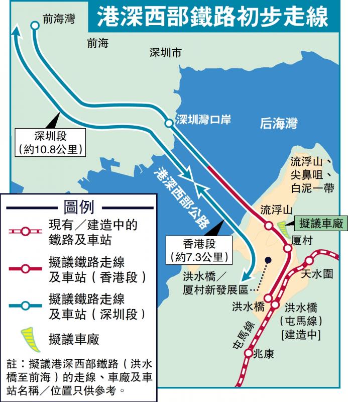 港深西部鐵路目標於2035年通車,設有洪水橋、厦村、流浮山、深圳灣和前海5個站點,香港運輸及物流局計劃今年內開展香港段的勘查及設計工程。香港立法會鐵路事宜小組委員會昨日(3月31日)開會,多名議員關注港深西部鐵路的最新方案及推展安排。