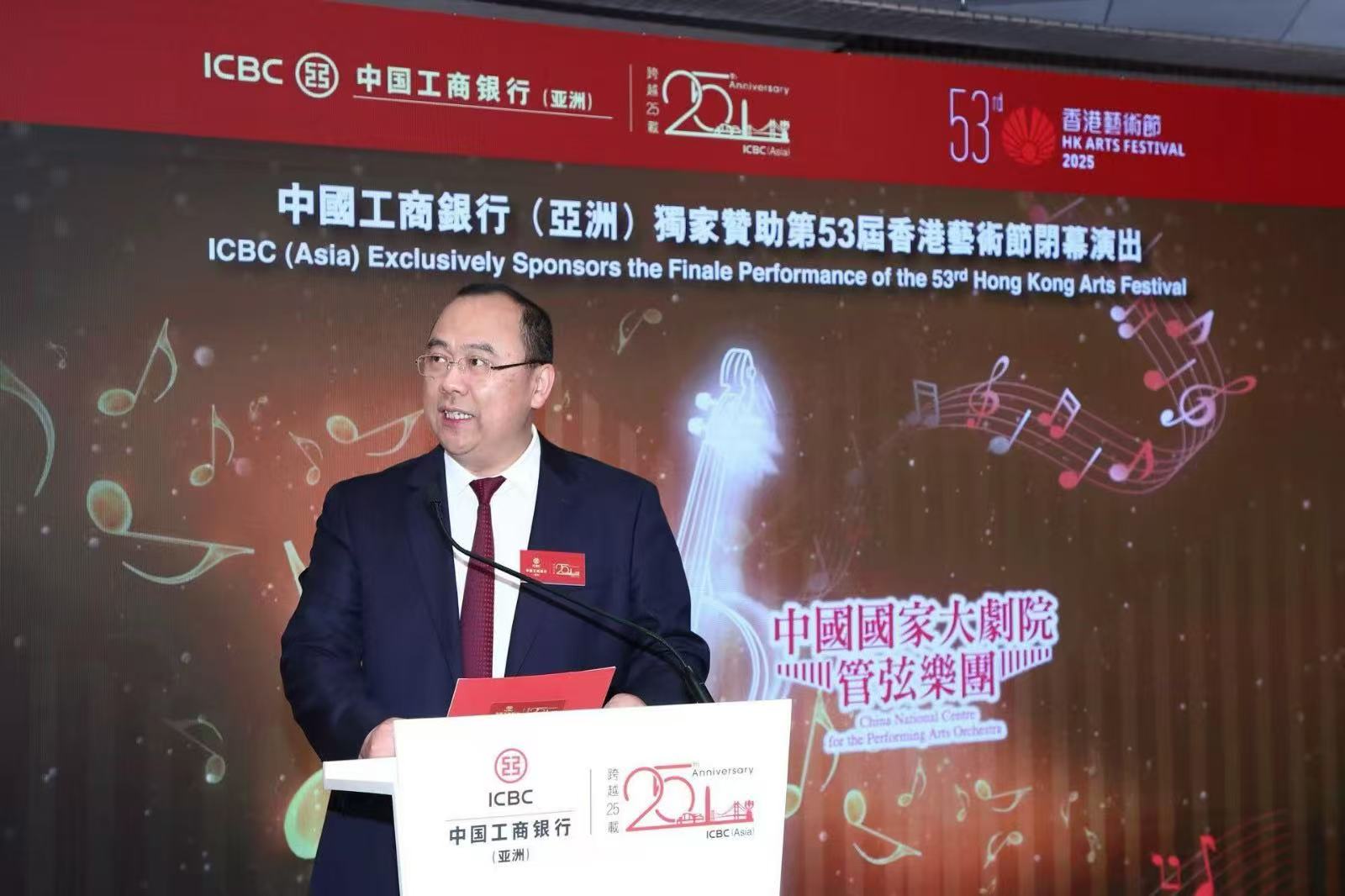 中國工商銀行(亞洲)董事長兼執行董事劉亞干博士表示:“中國工商銀行(亞洲)非常榮幸連續十三年獨家贊助香港藝術節閉幕演出,透過長期文化項目投入,以藝術為紐帶深化與客戶及社會的連結,並致力實踐金融與文化融合,為推動香港建設中外文化藝術交流中心注入動能。文化軟實力是城市競爭力的核心要素,我們深信金融機構不僅是經濟發展的引擎,更應成為文化傳承的守護者。本行將持續不遺餘力支持香港鞏固國際文化藝術樞紐地位,為社會創造長遠價值,助力香港成為國際文化盛事之都。”