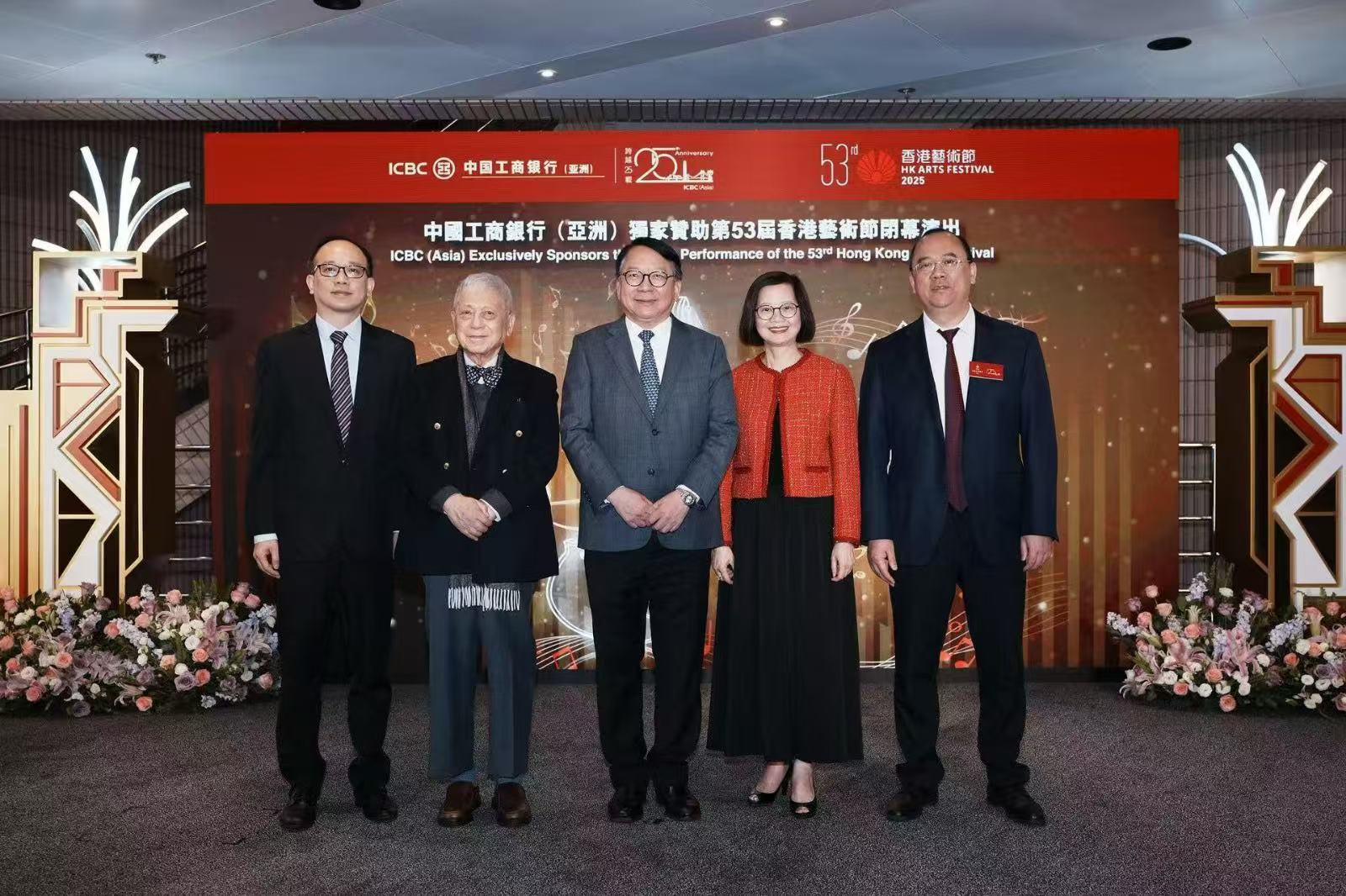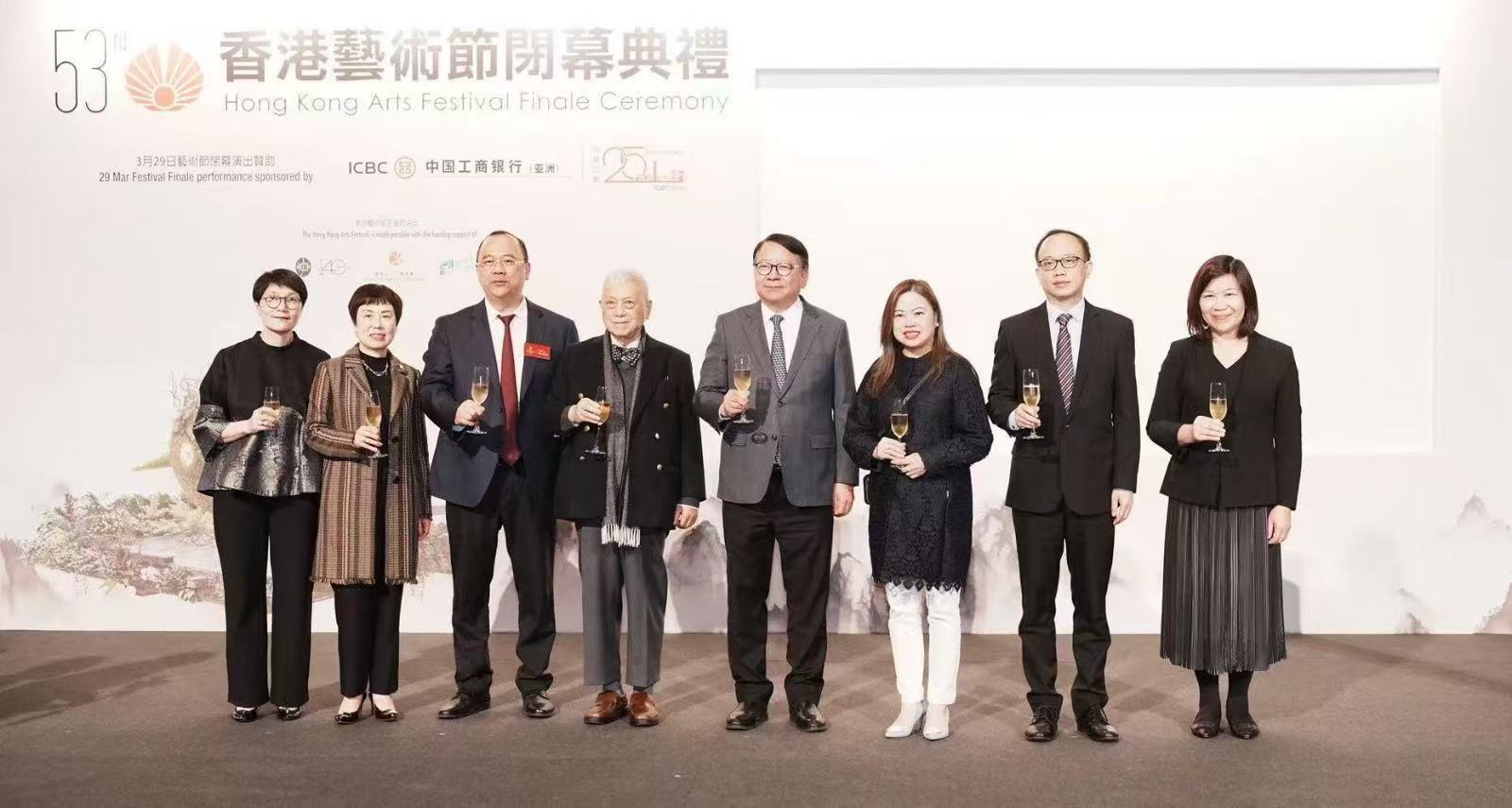中國工商銀行(亞洲)獨家贊助之第 53 屆香港藝術節閉幕演出於 3 月 29 日舉行,特別在閉幕演出前舉辦酒會,由中國工商銀行(亞洲)董事長兼執行董事劉亞干博士主持,更邀請到香港特別行政區政府政務司司長陳國基及其夫人、文化體育及旅遊局局長羅淑佩、香港藝術節協會主席盧景文教授,以及中國工商銀行(亞洲)的尊貴客戶等一同參與,共同支持本地文化藝術事業發展。