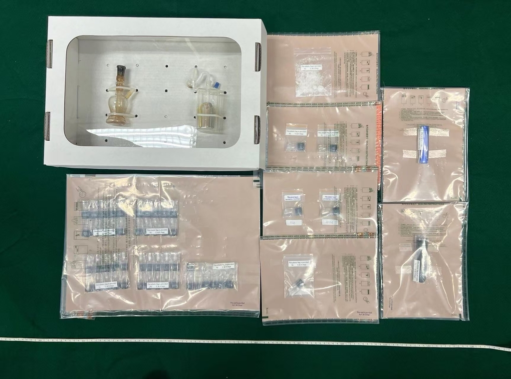 香港海關昨日(三月三十一日)在青衣檢獲五十二粒懷疑“太空油毒品”煙彈、約十克懷疑冰毒、兩支電子煙裝置、一批懷疑毒品吸食工具及包裝工具,估計市值共約二萬四千元,並拘捕三名懷疑涉案男子。
