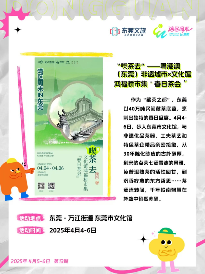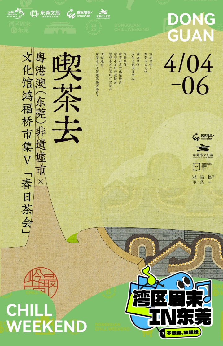 拂去清明霧氣,步入鴻福橋畔,聞見茶煙已沸,邀您攜杯而至,在粵港澳(東莞)非遺墟市×文化館鴻福橋市集,飲下這盞春意,長作嶺南知音。