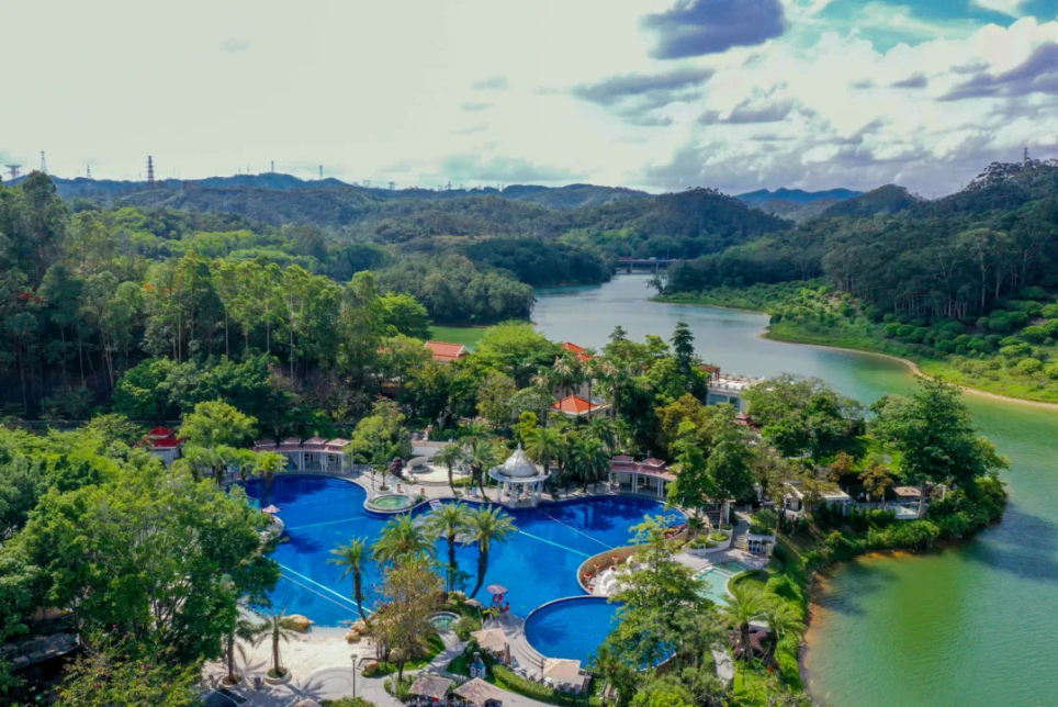 塘廈三正半山溫泉酒店,隱藏在6000畝的青山綠水之中,周圍椰樹成林,充滿東南亞風情,是度假的絕佳勝地。