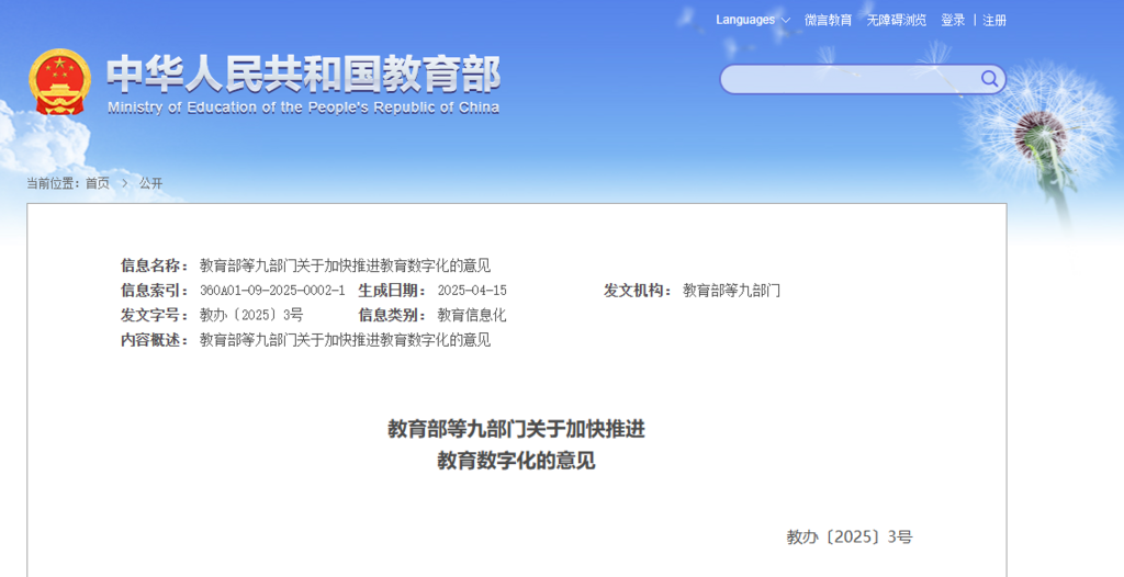 此外,《意見》還提出推動學科專業數字化升級和科研範式變革、以師生為重點提升全民數字素養與技能、全面支持教育決策和治理、賦能教育評價改革等。