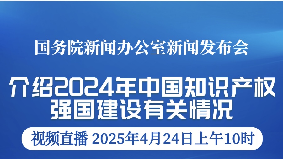 國務院新聞辦公室於2025年4月24日(星期四)上午10時舉行新聞發布會,請國家知識產權局局長申長雨介紹2024年中國知識產權強國建設有關情況,並答記者問。