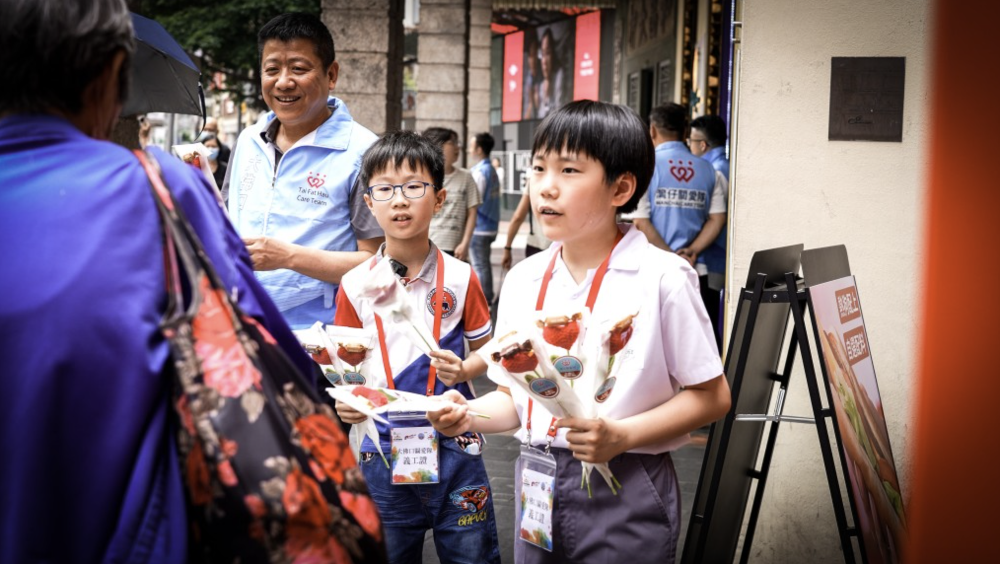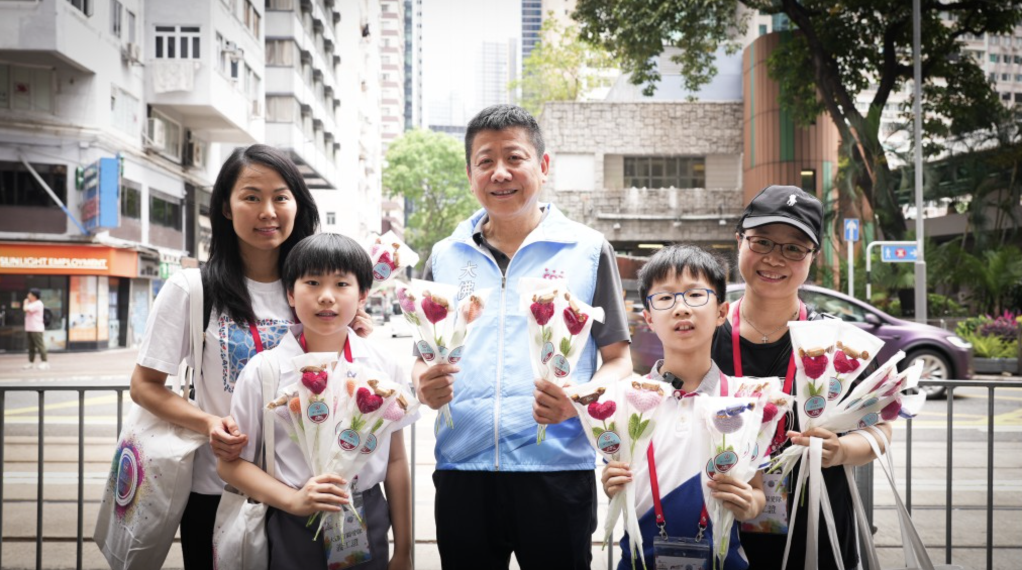 母親節即將到來,民政事務總署攜手灣仔大佛口關愛隊及兩位“我要讚佢”學生大使,昨日(4日)於灣仔李節街至利東街一帶舉辦“花語傳情”主題活動。多位媽媽義工,帶着小朋友一起,在人來人往的街道上,向路過的“媽媽們”送出800份手工編織花與巧克力,感謝她們的付出。有市民收到由小朋友送上的“心形花”禮物,感到非常喜悅,不忘為小朋友點讚。關愛隊希望活動能培養青少年感恩之心,促進社區和諧共融。