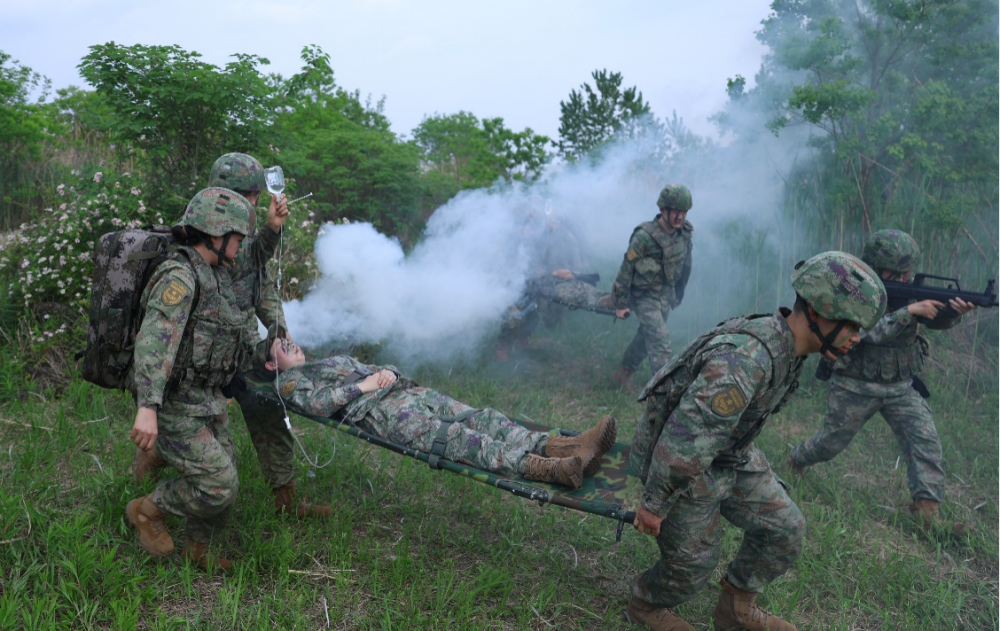 聯勤保障部隊第901醫院組織文職隊伍深入山林地域,開展實戰化崗位練兵,緊盯護理人員“走、打、搜、救、藏”等戰場急需管用的衛勤保障技能,錘鍊快速搜救、“傷員”轉運、火線救治能力。