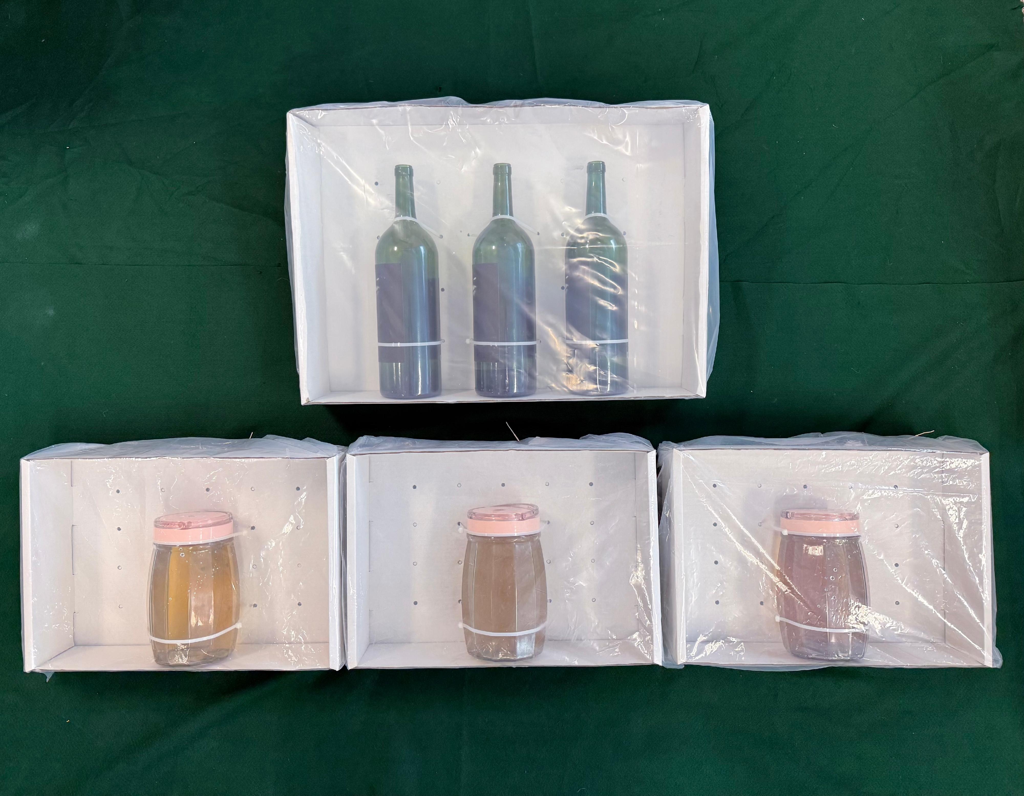 首宗案件中,海關昨晚在葵涌進行緝毒行動,搜查區內的一個處所。隨後,海關人員在一名男子的揹包中檢獲三支藏於酒樽的懷疑液態可卡因,共重約四點五公斤,該四十四歲男子隨即被捕。