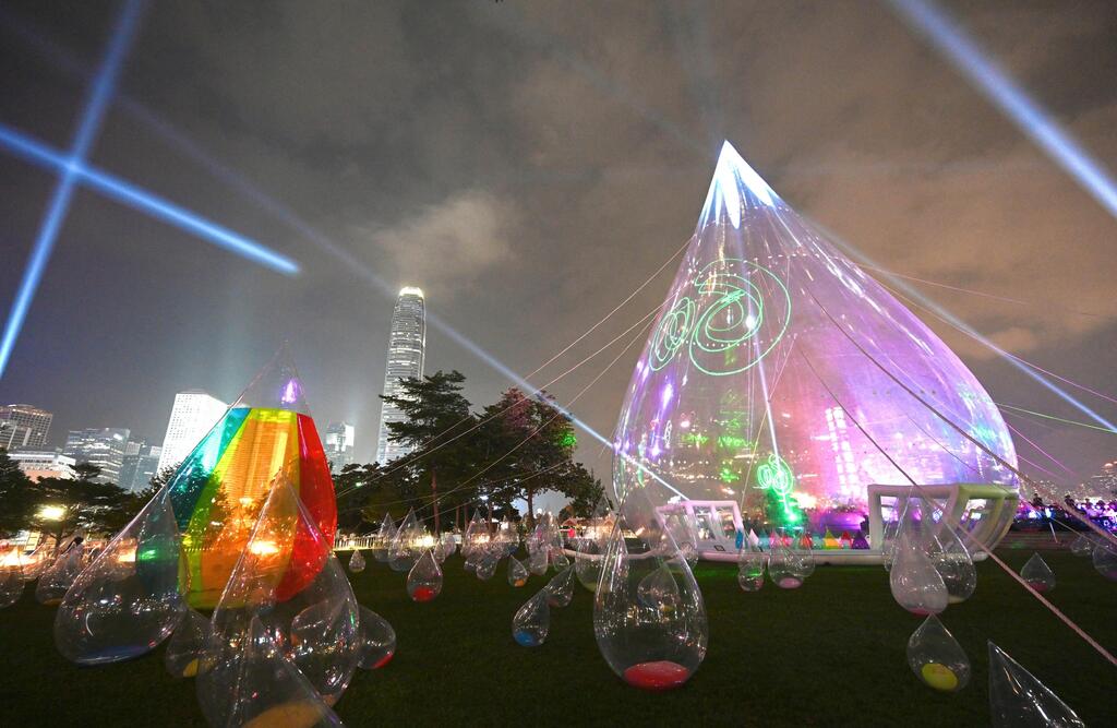 東江水供港60周年大型藝術展覽“舞動水滴展”今日(五月十一日)首次展出一個高達28.8米的巨型水滴裝置,為同類展覽中歷來最大。展覽現於添馬公園及中西區海濱長廊(中環段)舉行,展期至六月十三日。