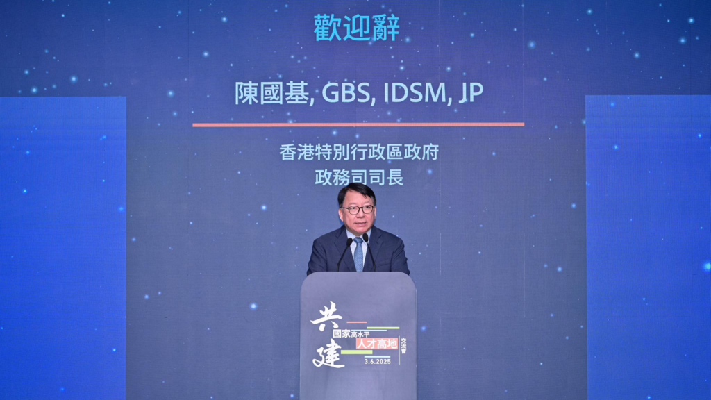 政務司司長陳國基說,現屆政府在爭奪人才方面作出巨大努力,自2022年底推出一系列積極招攬人才措施,截至今年4月底,各項人才入境計劃共收到超過47萬宗申請,批出超過31萬宗,共有約20萬8千名人才已攜同家人來港。