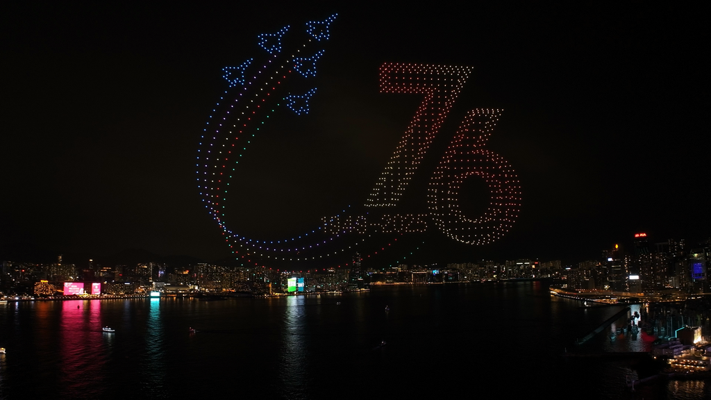 期間,無人機將展示大型“慶”字、東江供水60周年紀念圖案、航母山東艦,以及香港特色圖案,如紫荊花、帆船和地標等。